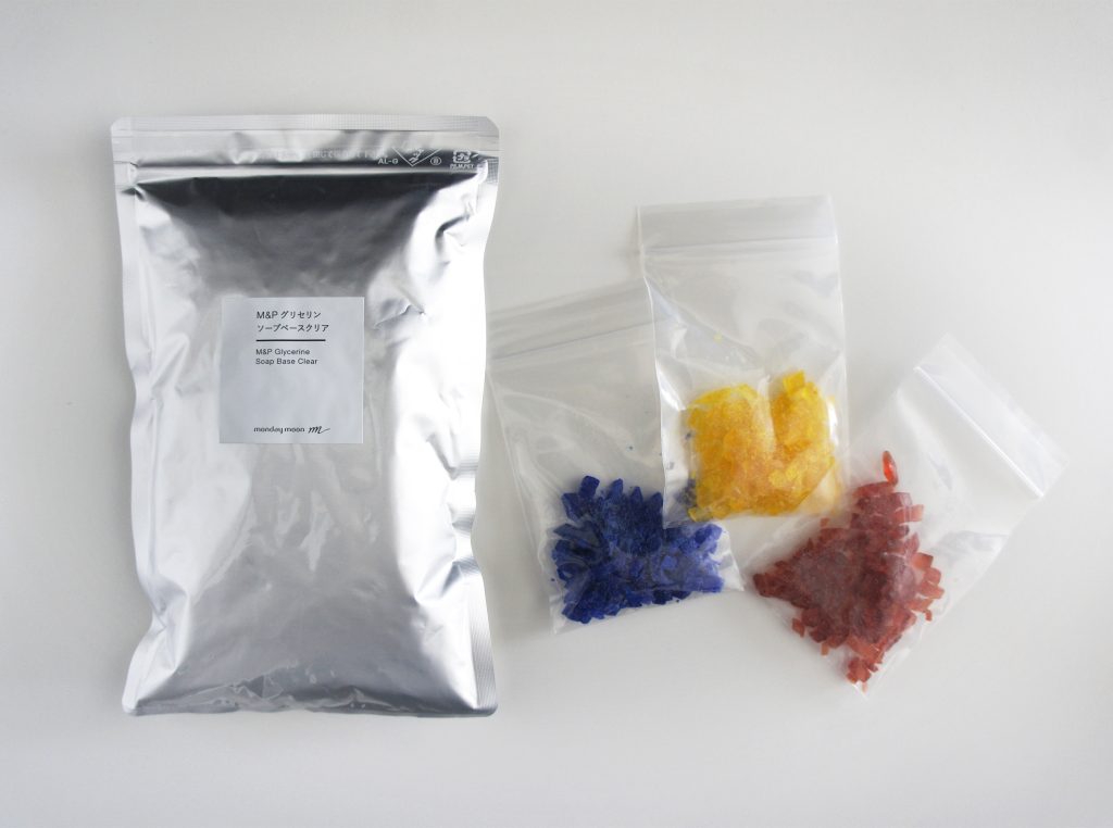 グリセリンソープ(クリア約240g、レッド・イエロー・ブルー各約10g)