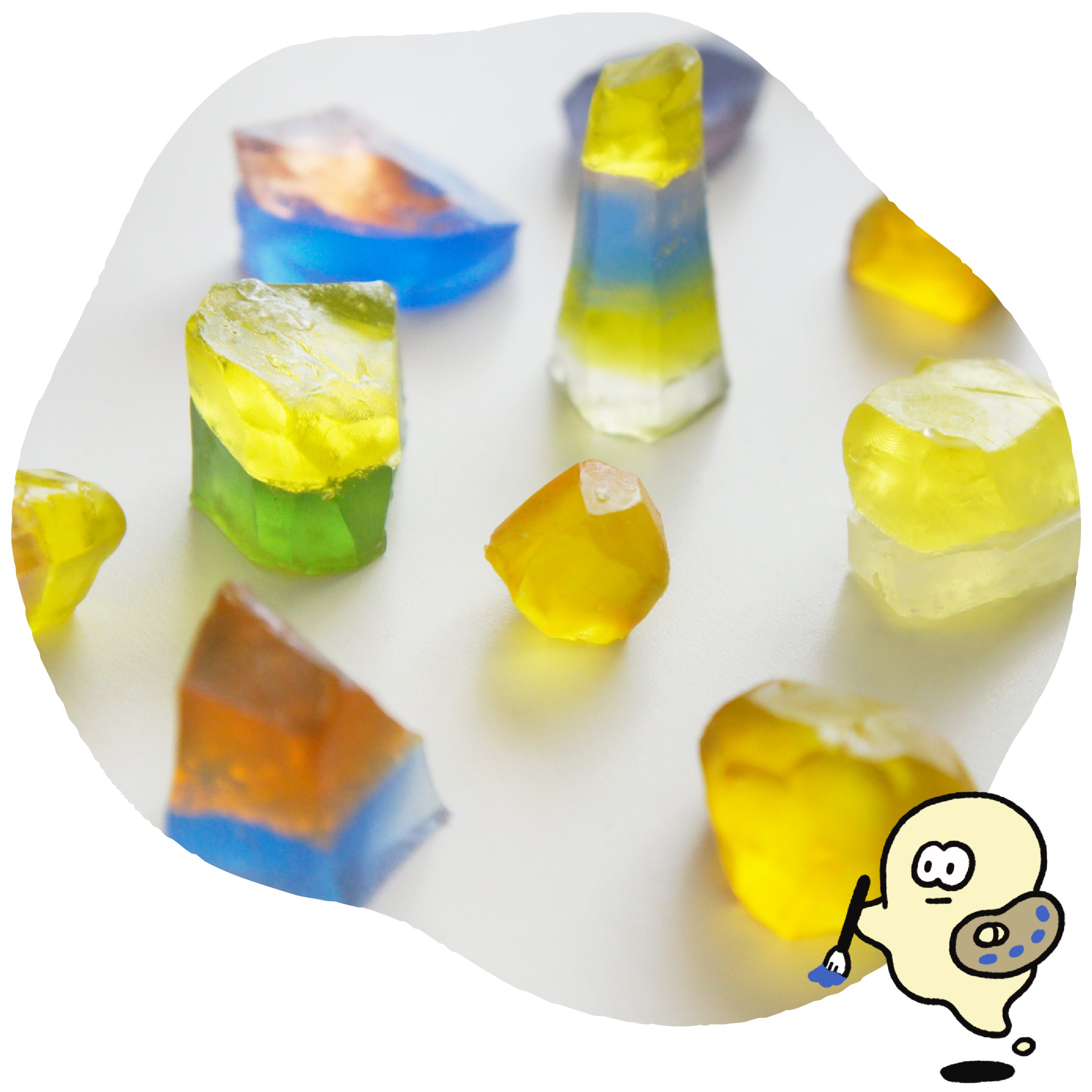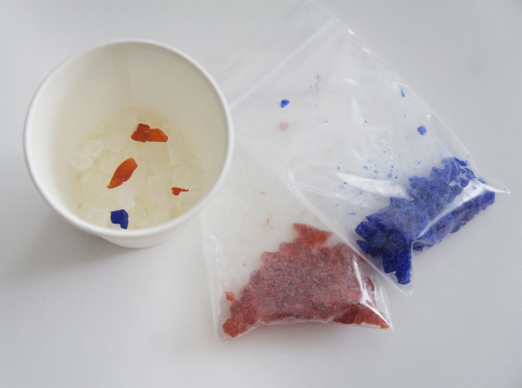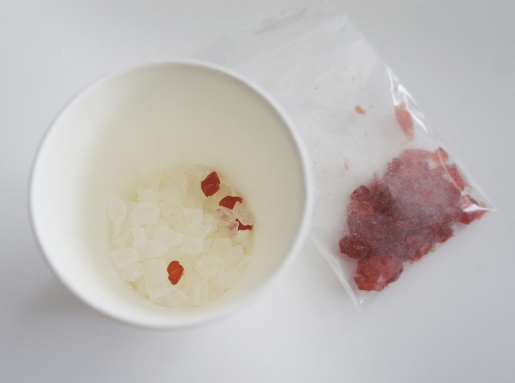 作りたい色のかけらを数粒加えて、電子レンジで10秒ほどチン。