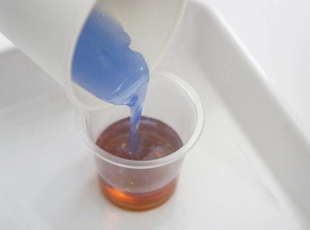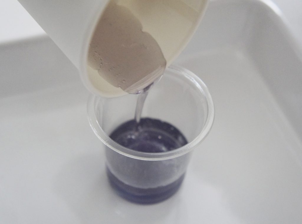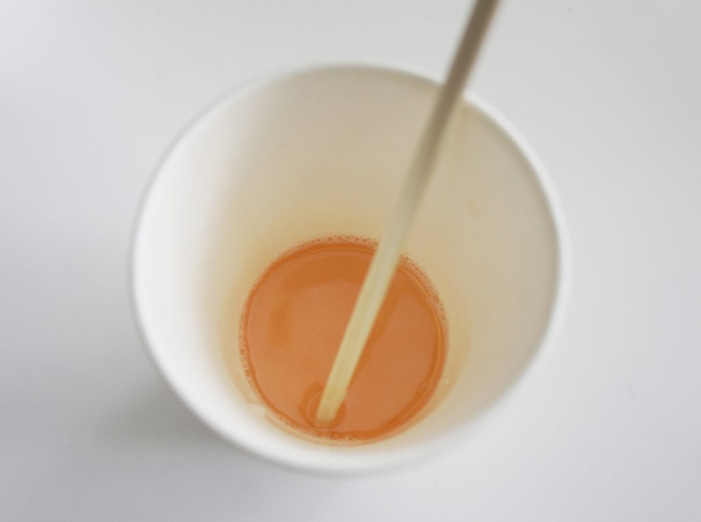 溶け残りがあれば追加で数秒チンして、全て溶けたら固まらないうちにプラコップへ流し入れる。