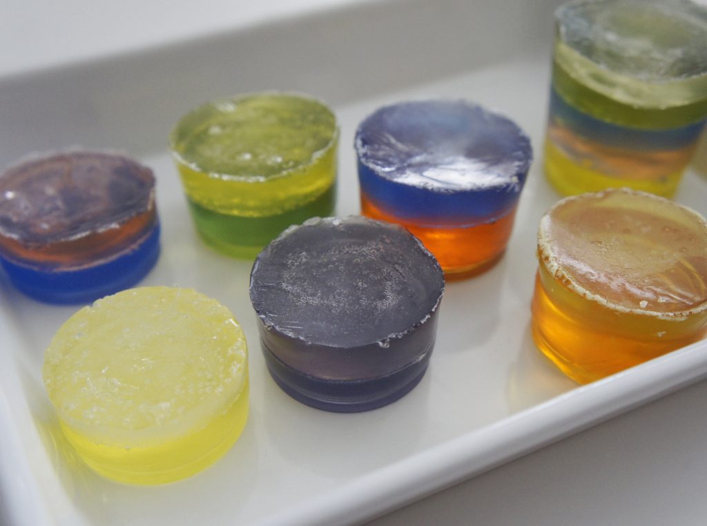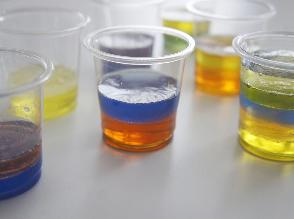 下の層がある程度固まったら次の色を流し入れて