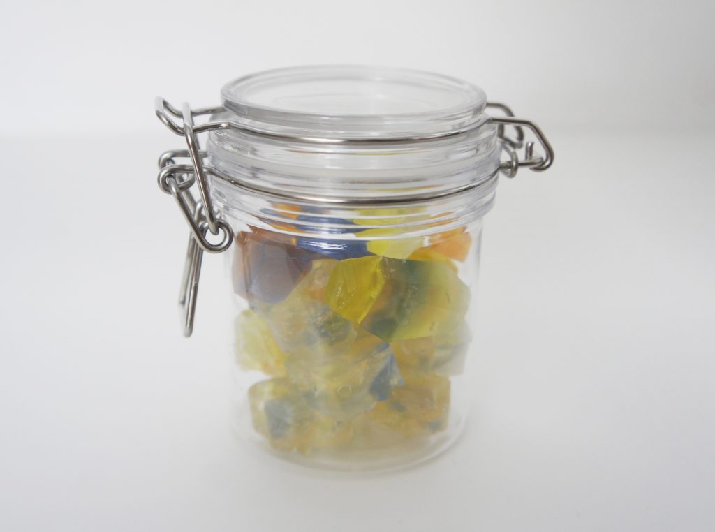 作った宝石石鹸は保存ケースに入れて、手洗いなどに使ったりしています。
